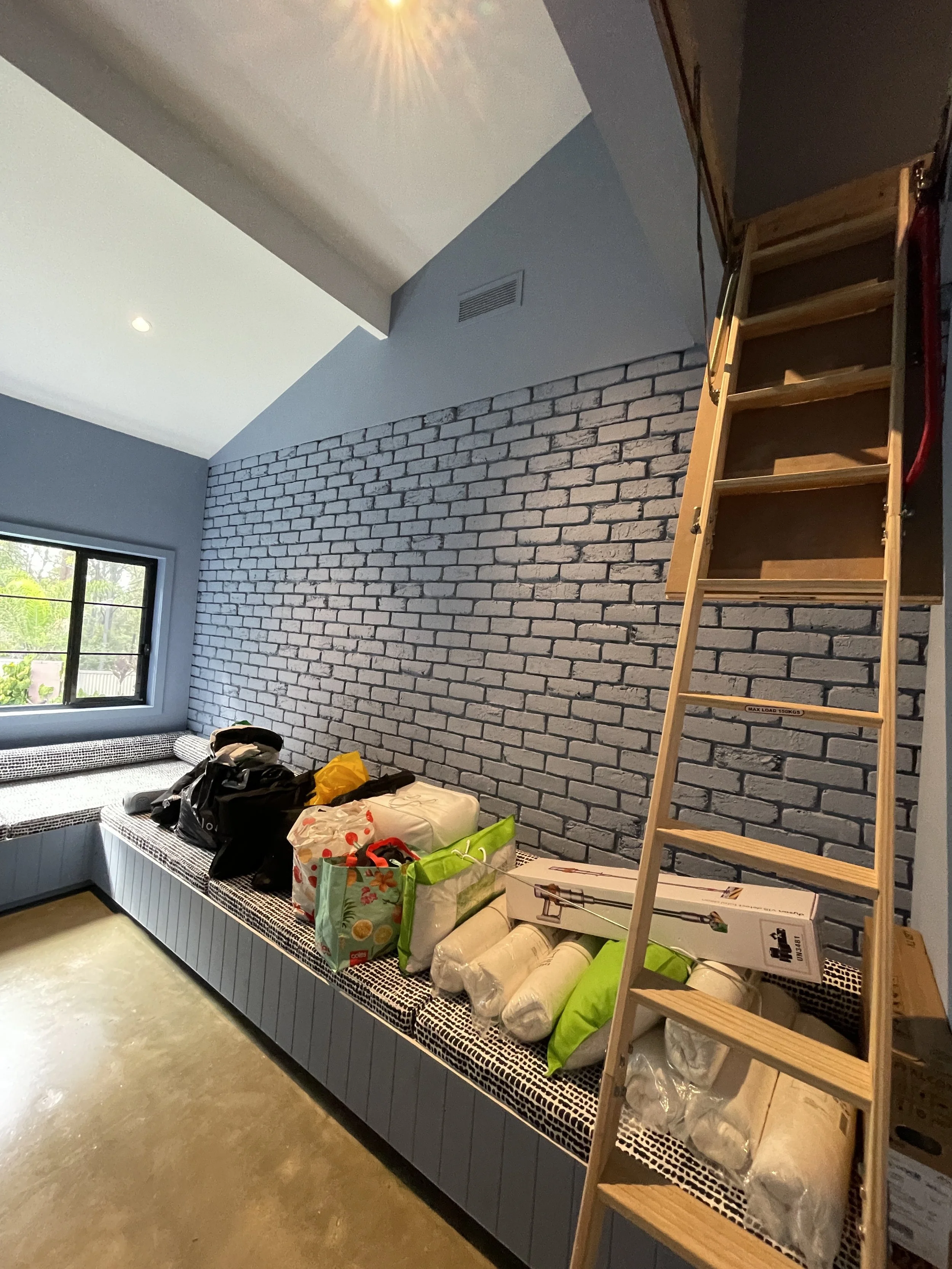 Revamp your space with our full interior painting services. We’ve specifically applied a fresh finish over brick cement walls, achieving a sleek industrial style that blends modernity with charm.